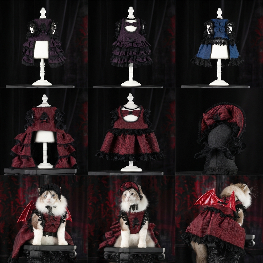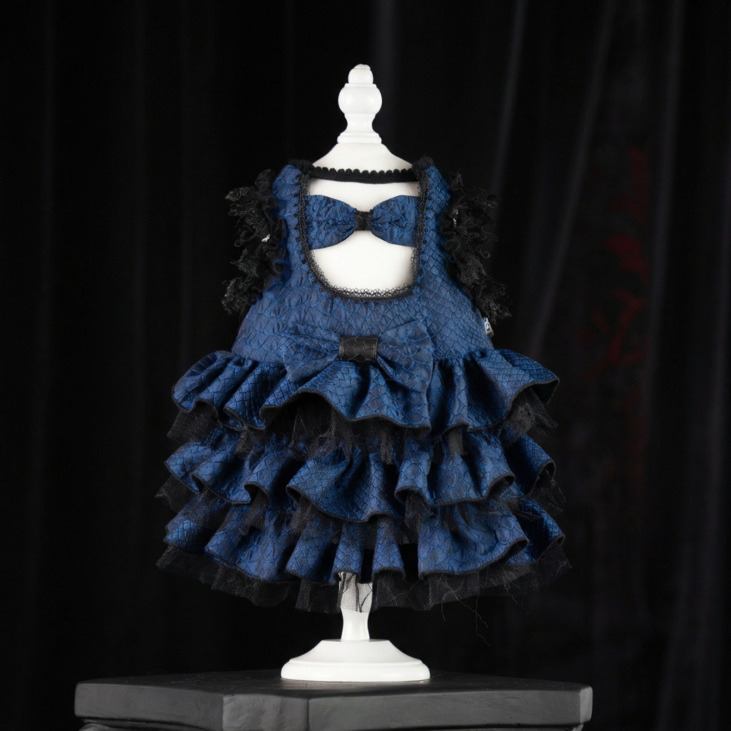 Custom Dragon Scale Lolita Princess Dress for Cats and Dogs.Handmade custom dress featuring dragon scale patterned fabric. Perfect for cats and small to medium dogs. Ideal for parties, photoshoots, or special occasions.