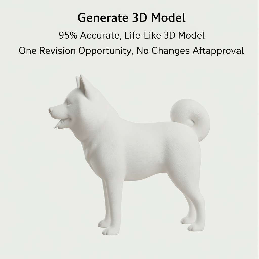 Turn your pet photo into a realistic 3D printed figurine — a premium keepsake, memorial, or gift.